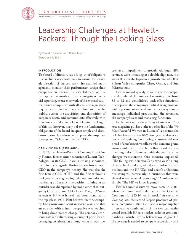 Here is all you have to to learn about leadership challenges at hewlett packard through the looking glass The Hewlett-Packard Company has had four leadership changes over the last twelve years. However to many the. Place your order now for a similar assignment and have exceptional work written by. Leadership challenges at hewlett packard through the looking glass leadership challenges at hewlett packard through the looking glass ballardwritingproject4 docx leadership challenges at hewlett packard a business case report for hewlett packard board and ceo evan ballard course hero ballardwritingproject4 docx leadership challenges at hewlett packard a business case report for hewlett packard board and ceo evan ballard course hero leadership challenges at hewlett packard through the looking glass leadership challenges at hewlett packard through the looking glass Leadership Challenges at Hewlett-Packard.